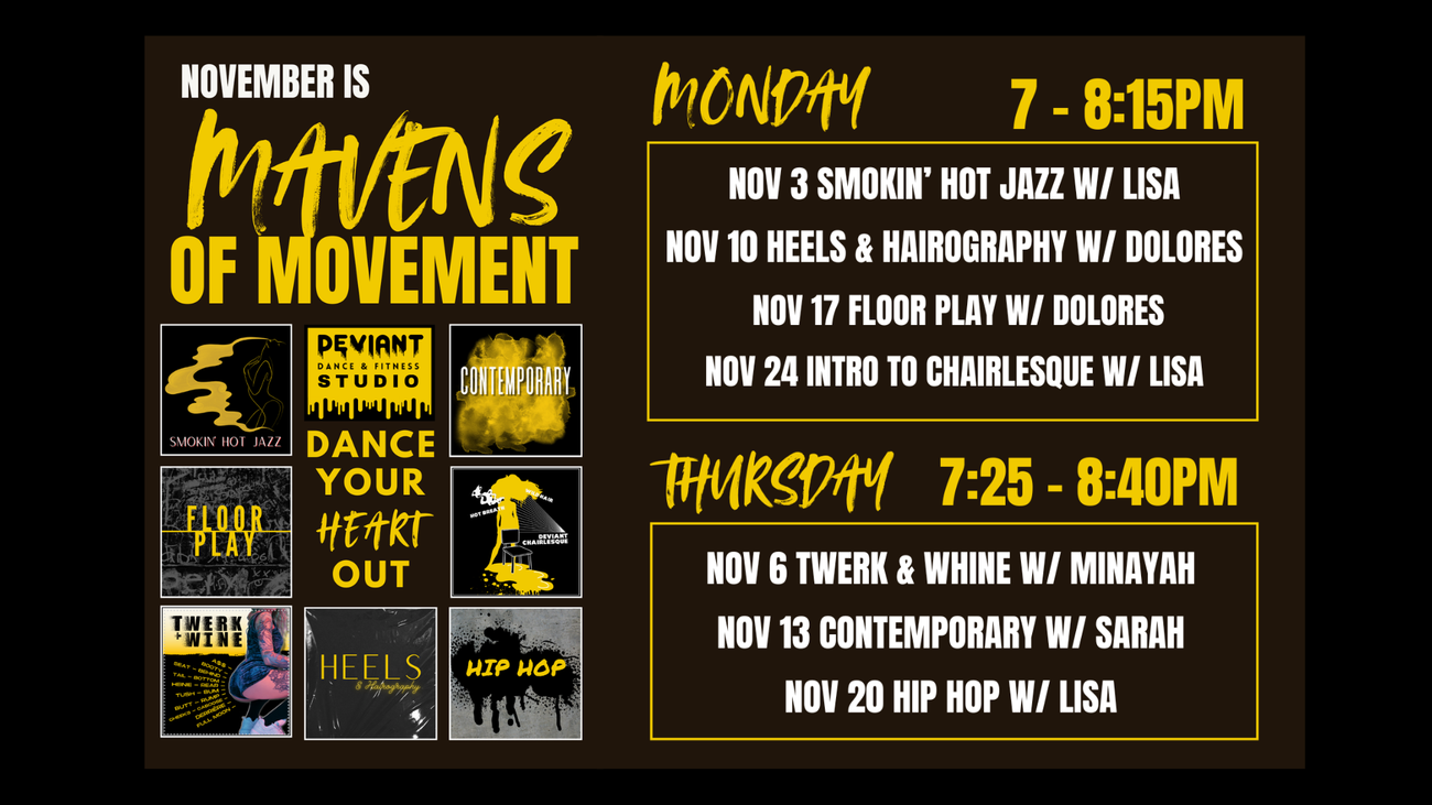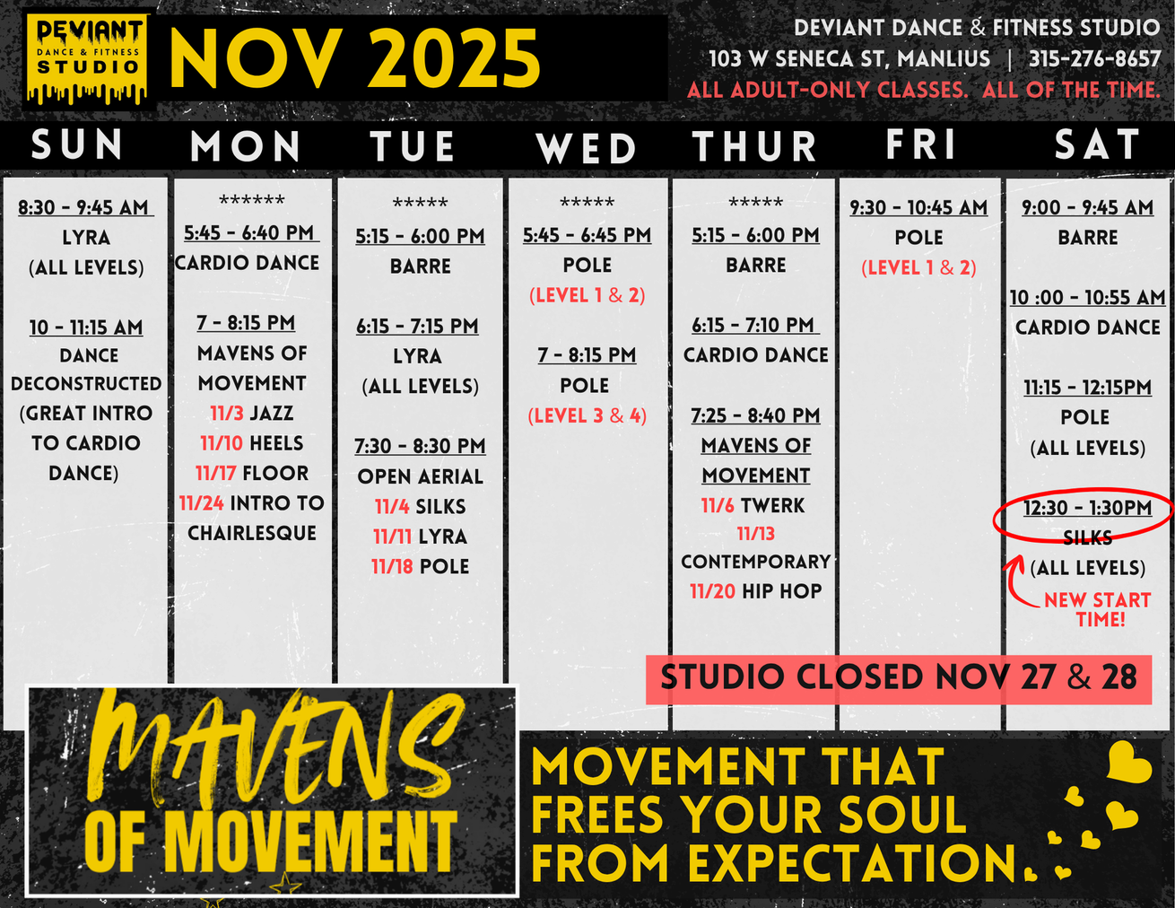 Deviant Dance & Fitness is an adults-only dance, aerial, and movement studio.